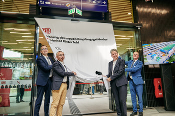 Rund 23 Millionen Euro haben der Bund, das Land Sachsen-Anhalt, die Stadt Bitterfeld-Wolfen und die Deutsche Bahn (DB) in das Vorzeigeprojekt investiert. Mit dem symbolischen Lüften des Vorhangs durch Stefan Schnorr, Staatssekretär im Bundesministerium für Digitales und Verkehr, Ralf Thieme, Vorstand Personenbahnhöfe DB InfraGO, Lydia Hüskens, Ministerin für Infrastruktur und Digitales des Landes Sachsen-Anhalt, sowie Armin Schenk, Oberbürgermeister der Stadt Bitterfeld-Wolfen, wurde es jetzt der Öffentlichkeit übergeben.