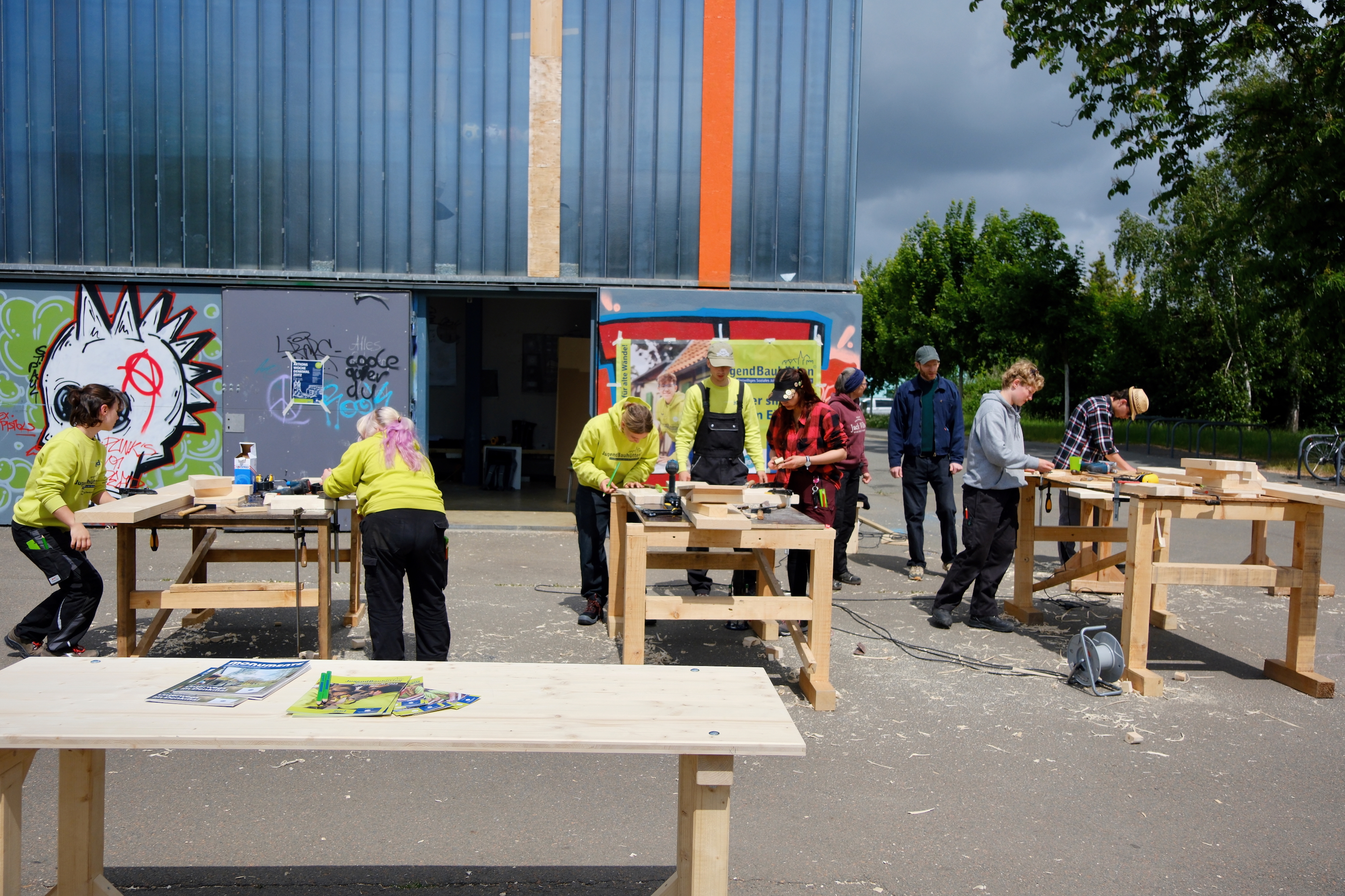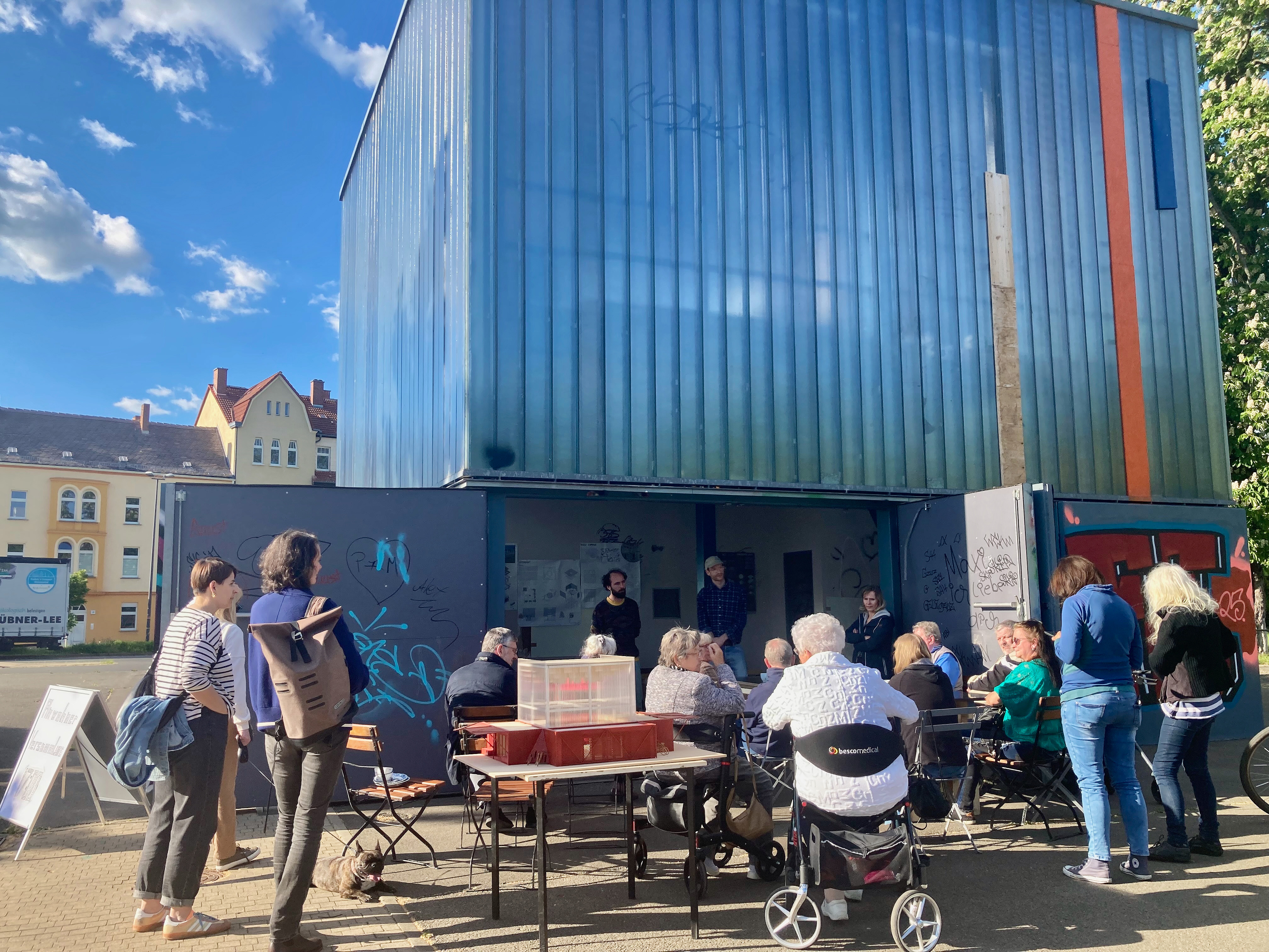 Einen Sommer lang experimentierten wir mit Kindern- und Jugendlichen aus der Nachbarschaft, wie man die leerstehende Bluebox und den Schützenplatz in Zeitz nutzen könnte, und motivierten sie, ihre Ideen selbst umzusetzen. Die gesamte Nachbarschaft war eingeladen, einen Begegnungsort zu entwickeln, an dem sich alle wohlfühlen.